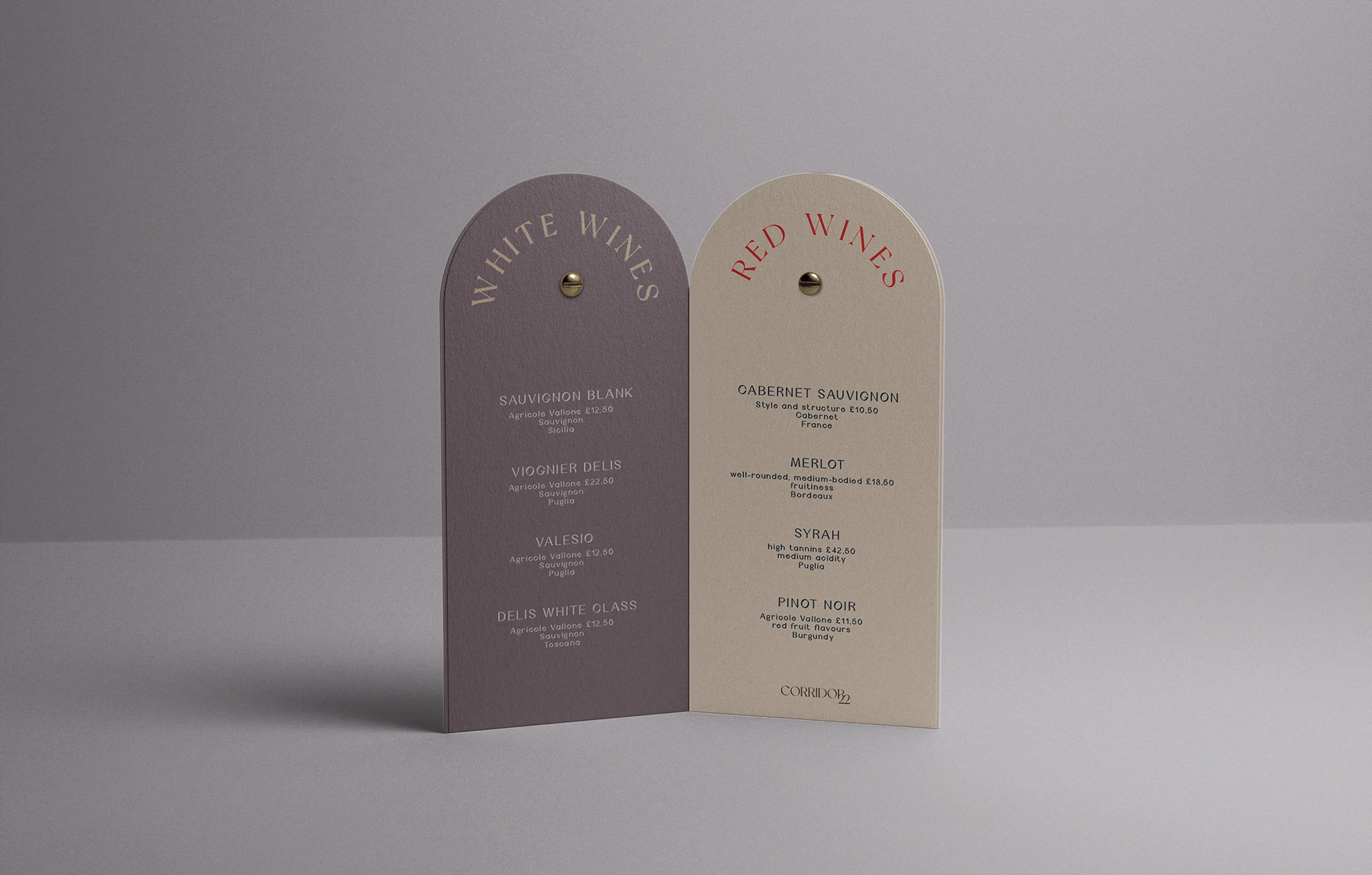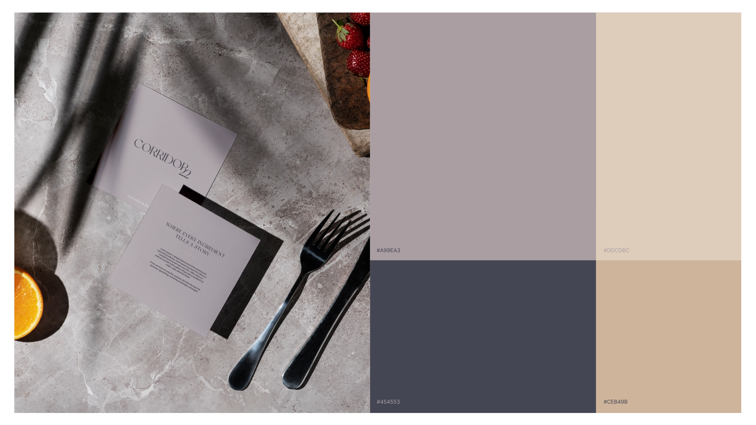 A sleek, minimalist font spells out "Corridor 22" in a timeless style, while the number "22" is subtly integrated, creating a unique and memorable touch.